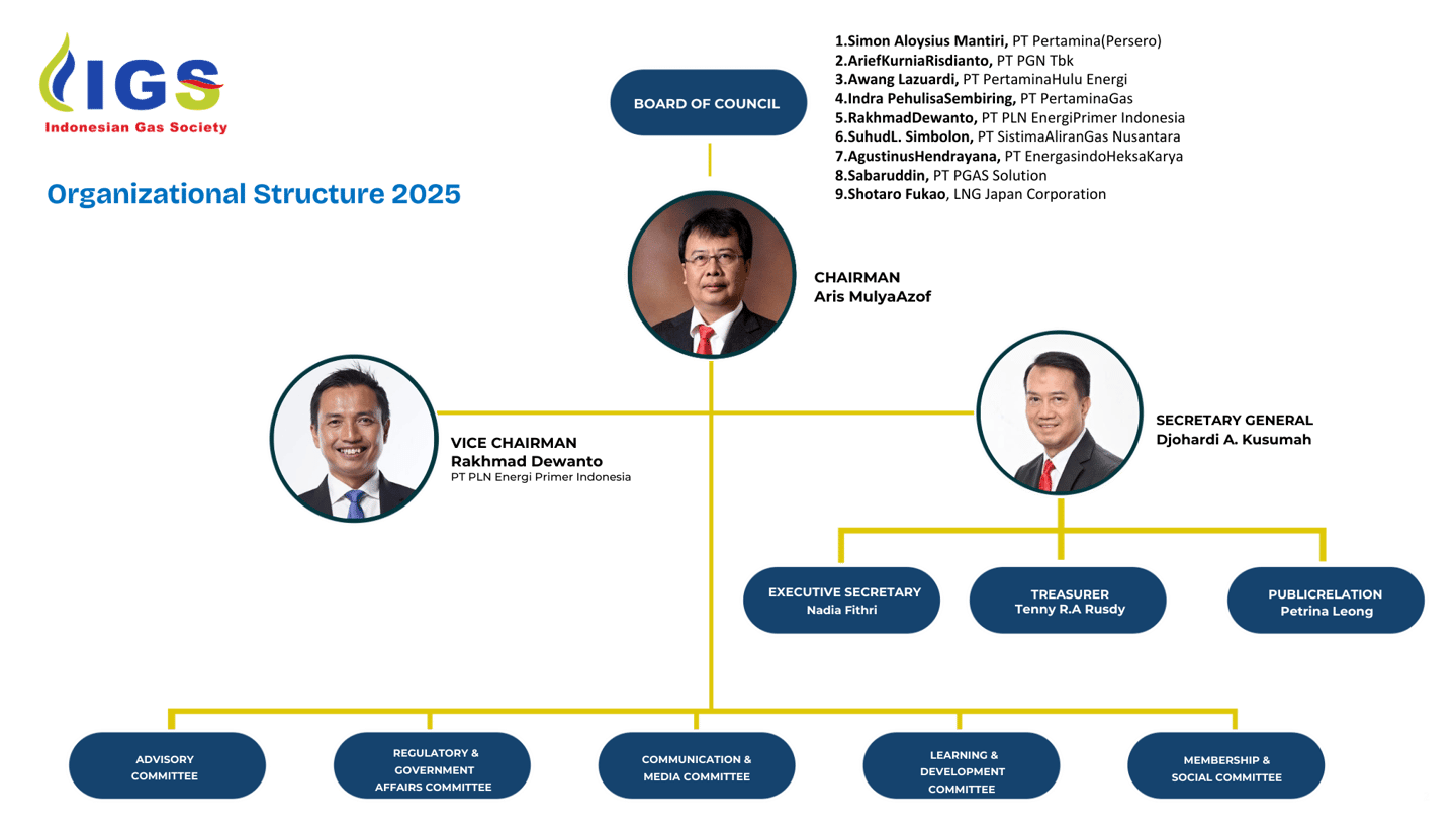 Founded in 2014, the Indonesian Gas Society (IGS) is a non profit convener that advances Indonesia’s gas industry end-to-end upstream, midstream, and downstream by integrating commercial, technical, operational, human capability, and HSSE dimensions into one credible forum for evidence-based dialogue and collaboration.