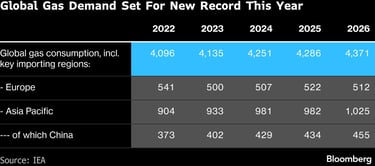 Natural gas demand in the Asia-Pacific region is expected to increase by 4% in 2026, accounting for approximately half of total global gas demand growth.