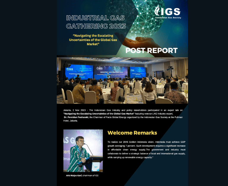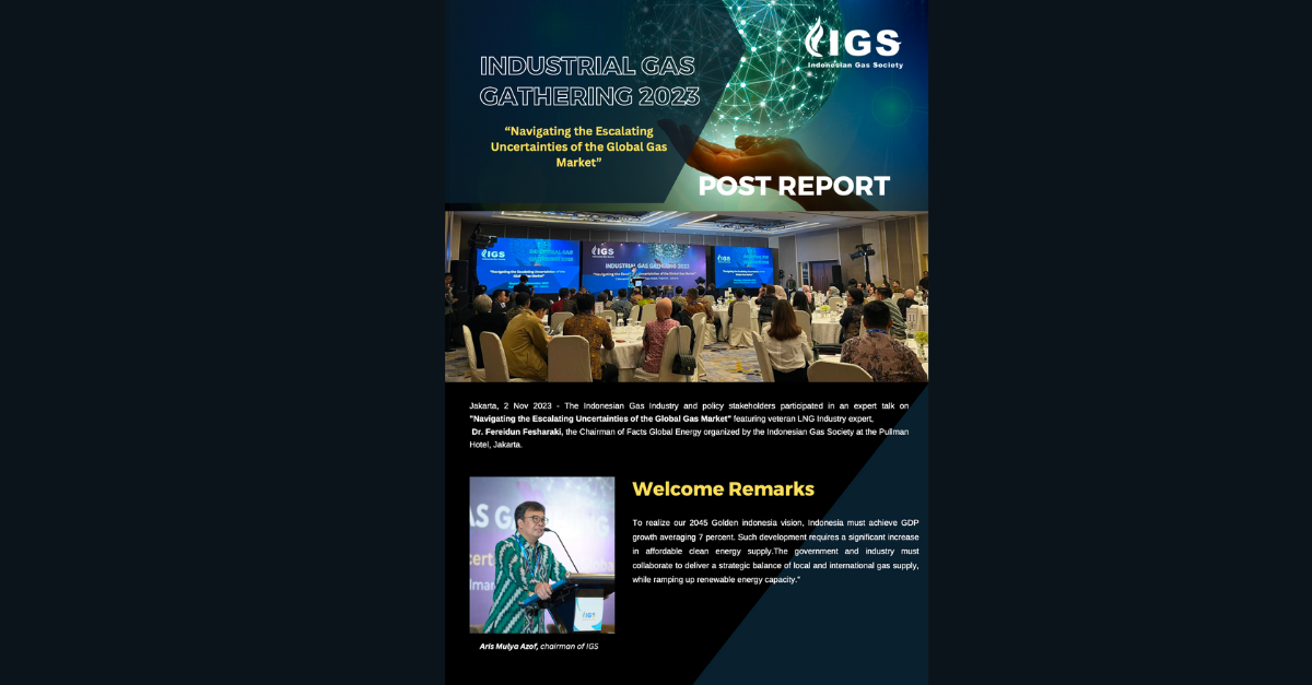 The Industrial Gas Gathering 2023, organized by the Indonesian Gas Society (IGS), focused on navigating the complexities of the global market to support Indonesia's long-term economic goals. IGS Chairman Aris Mulya Azof emphasized that realizing the "Golden Indonesia 2045" vision, which targets an average GDP growth of 7%, requires a substantial increase in affordable clean energy supply. To achieve this, the government and industry must collaborate to strategically balance local and international gas supplies while simultaneously increasing renewable energy capacity.