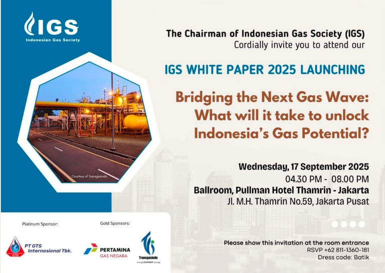 The Indonesian Gas Society (IGS) officially launched its 2nd White Paper in 2025 with the theme "Bridging the Next Gas Wave," designed as a roadmap to navigate the role of natural gas in Indonesia's energy transition toward the net-zero emission target by 2060. Developed in collaboration with Rystad Energy, the document highlights critical areas such as regional LNG supply-demand gaps and emphasizes the urgent need for integrated infrastructure to connect domestic supplies with demand centers, aiming to avoid shortages in key regions like Java and Sumatra.
