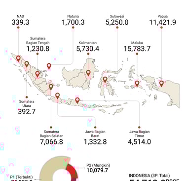 Indonesia’s total 3P gas reserves are shown in the official reserves map (Ditjen Migas, Statistik Migas Semester I 2024). The map highlights national totals and regional distribution, to see where supply potential concentrates.